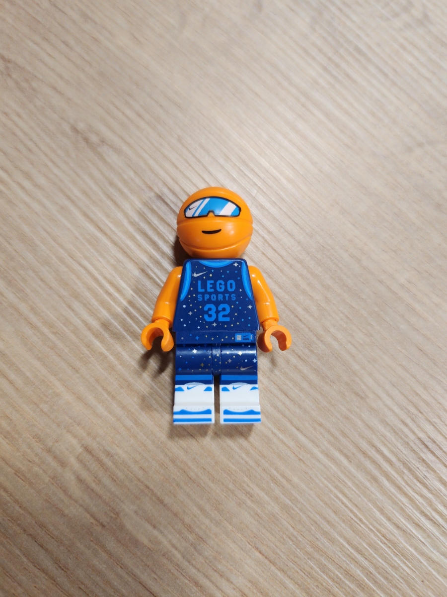 Jedes ikonische Set braucht eine ikonische Figur und LEGO liefert: Die beiliegende Minifigur „B’Ball Head“ ist ein echter Hingucker. Ihr Kopf ist ein Basketball, komplett mit Nike-Sonnenbrille und breitem Grinsen. Der Torso zeigt das Trikot von „LEGO Sports“ mit der Nummer 32, eine Hommage an das Gründungsjahr der LEGO Group (1932), während die Rückseite mit der Zahl 72 auf das Jahr 1972 verweist, in dem Nike den legendären „Moon Shoe“ vorstellte. Die Figur trägt natürlich die gleichen Nike Dunks, die auch als großes Modell gebaut werden. Damit schließt sich der Kreis, ein kleines, cleveres Meta-Detail, das Sammler und Designer gleichermaßen schätzen dürften.