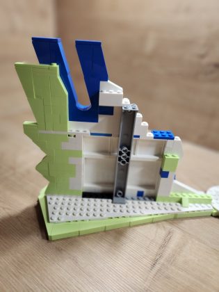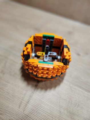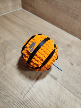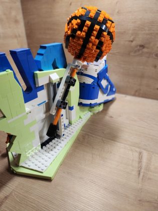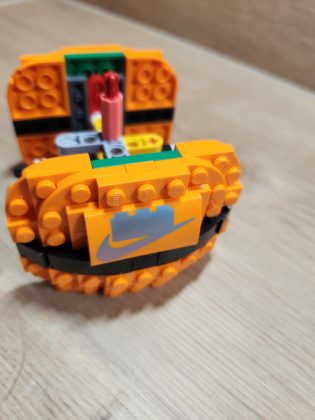 Der Bau der Schuhform ist erstaunlich komplex. Die Kombination aus geschwungenen Linien, schrägen Bautechniken und dem typischen Nike-Swoosh erfordert Präzision, belohnt aber mit einer beeindruckenden Formgebung. Die „DUNK“-Basis wiederum ist klassisches Brick-Stacking, simpel, aber äußerst wirkungsvoll und bildet einen auffälligen, typografischen Kontrast zur organischen Form des Sneakers. Der Basketball schließlich nutzt ein Technic-Innenleben und ist überraschend anspruchsvoll. Hier sollte man bei der Ausrichtung der Elemente genau hinschauen, um eine saubere Kugelform zu erhalten.