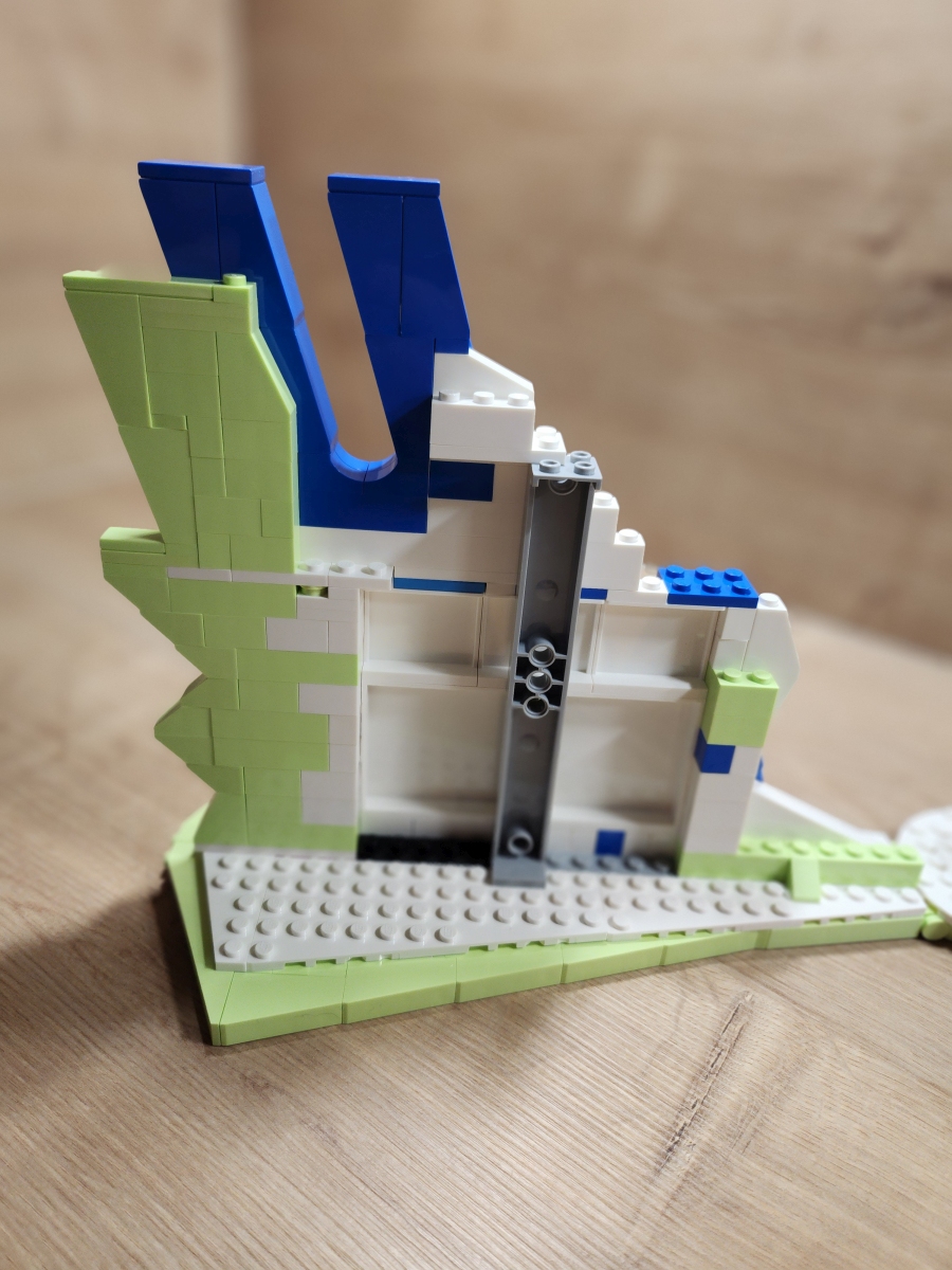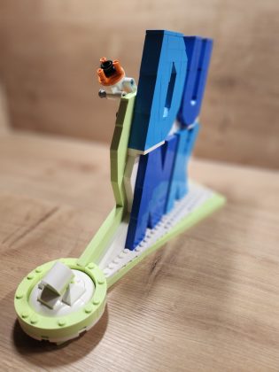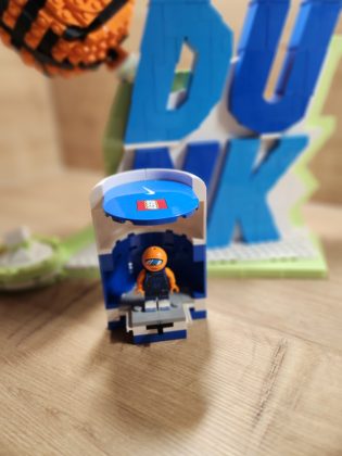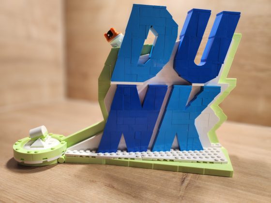 Aufgebaut wirkt das Set wie ein modernes Kunstobjekt. Der breite, aber flache Sockel mit dem markanten „DUNK“-Schriftzug sorgt für Stabilität und visuelle Balance. Der Basketball lässt sich über eine kleine, versteckte Mechanik sogar drehen, ein charmantes, leicht verspieltes Extra. Mit einer Höhe von rund 25 cm und einer Länge von etwa 30 cm ist das Set präsent, ohne zu wuchtig zu sein. Es eignet sich hervorragend für Regale, Schreibtische oder Vitrinen, besonders in Kombination mit anderen Lifestyle-orientierten LEGO-Sets wie der Adidas Superstar (10282).
