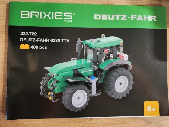 Beim Auspacken fällt sofort auf, dass Brixies auf klare und übersichtliche Verpackung setzt. Die Box zeigt den markanten grünen Deutz-Fahr Traktor prominent, die Lizenzgebung macht das Modell direkt authentisch. Innen sind die Tüten gut nummeriert, die Anleitung liegt bei. Der erste Eindruck: solide Wertigkeit, keine Spielzeug-Optik, hier wird Modellbau adressiert.