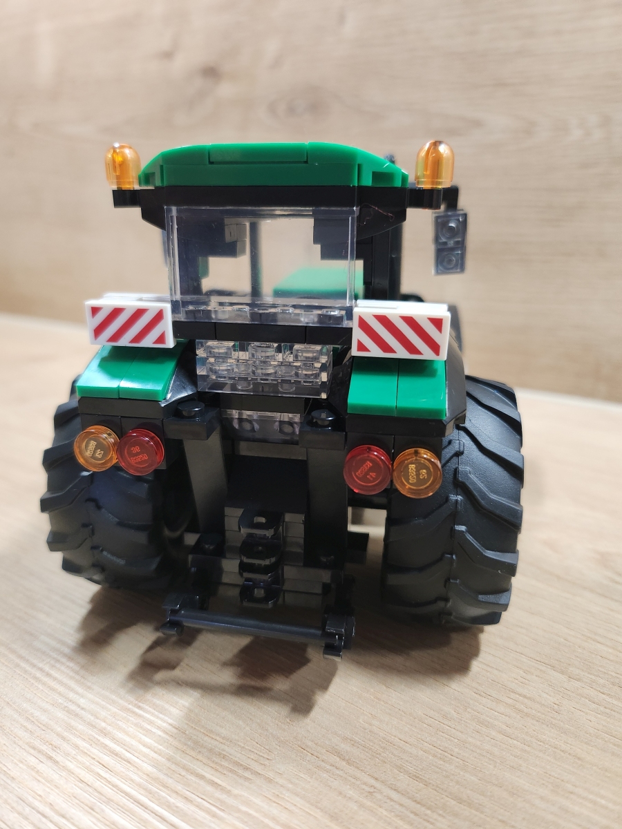 Der Aufbau des Modells ist für ein Brixies Plus-Set vergleichsweise anspruchsvoll. Wer mit Klemmbausteinen vertraut ist, wird Freude daran haben, wie sich die typischen Traktor-Elemente Stück für Stück formen: Laufwerke, Fahrerkabine, Motor- und Technikdetails. Einige Schritte erfordern Sorgfalt und Konzentration, insbesondere bei schrägen Verkleidungen oder Techniknachbildungen. Wer wenig Erfahrung im Modellbau hat, sollte etwas Zeit einplanen. Gleichzeitig belohnt das Ergebnis mit einem greifbaren Gefühl: man baut wirklich einen „Traktor“, keinen reinen Spielzeugnachbau. Denn beispielweise am Heck ist auch direkt eine Aufhängung für diverse Extras wie Anhänger angebracht, was einem direkt das Gefühl gibt, hier einen Allrounder für den eigenen Fuhrpark an Landwirtschaftsfahrzeugen aufzubauen, was gerade für eine schön hergerichtete Vitrine unerlässlich ist.