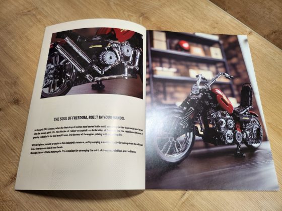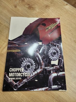 Schon beim ersten Blick auf die Verpackung fällt auf: Nifeliz hat hier kein Kinderspielzeug im Sinn, sondern ein Sammlermodell. Das schlichte schwarze Design mit glänzendem Produktfoto wirkt hochwertig und erinnert an Präsentationsboxen aus der Automodell-Branche. Im Inneren finden sich mehrere nummerierte Beutel, eine gebundene Bauanleitung in Farbe und einzelne verpackte Chromteile. Besonders schön: Das Set ist sauber sortiert, wodurch das Bauen strukturiert und angenehm verläuft. Bereits der Aufbau der Basis, Rahmen, Schwinge und Motorblock, vermittelt echtes Technik-Feeling.