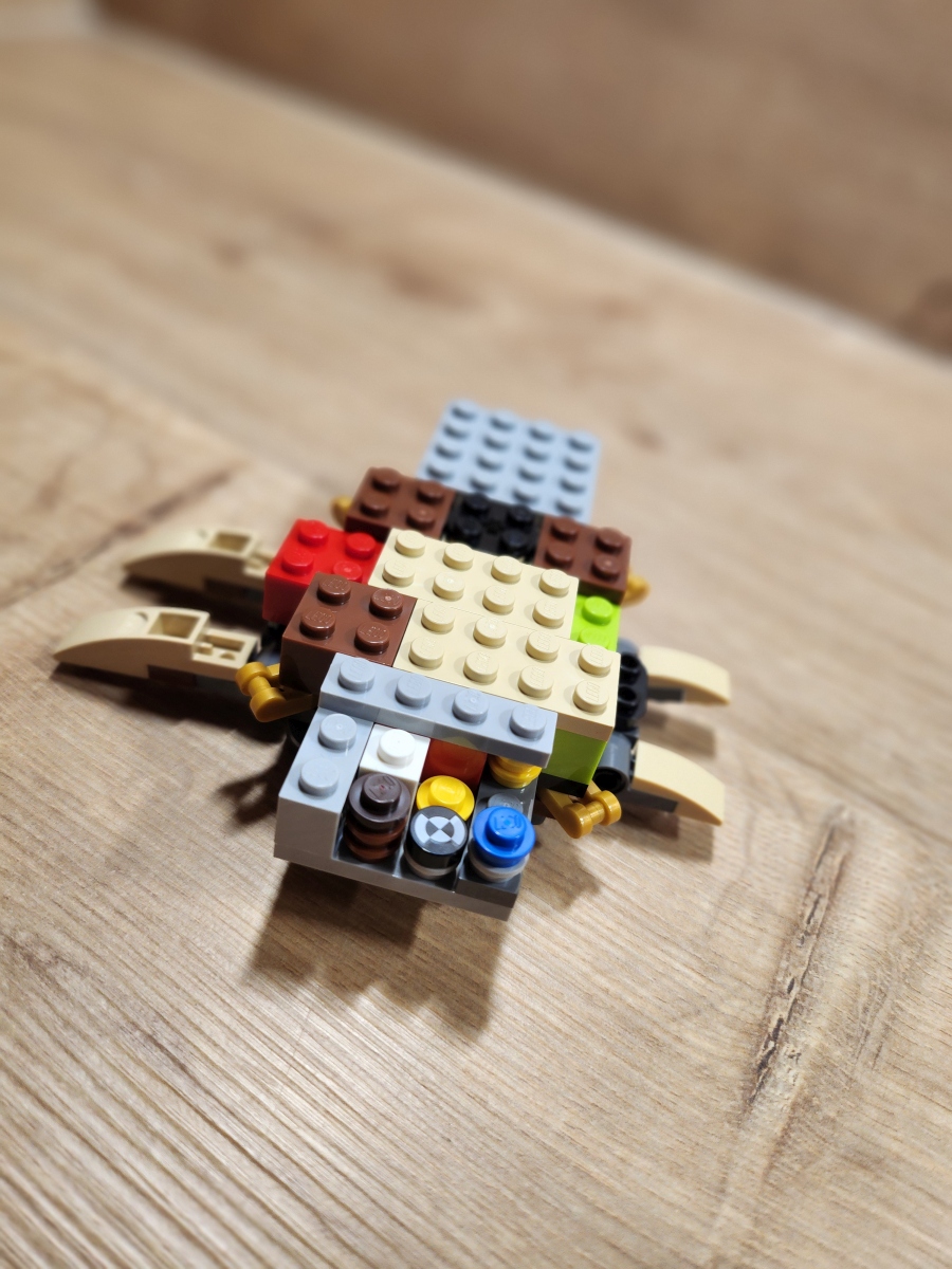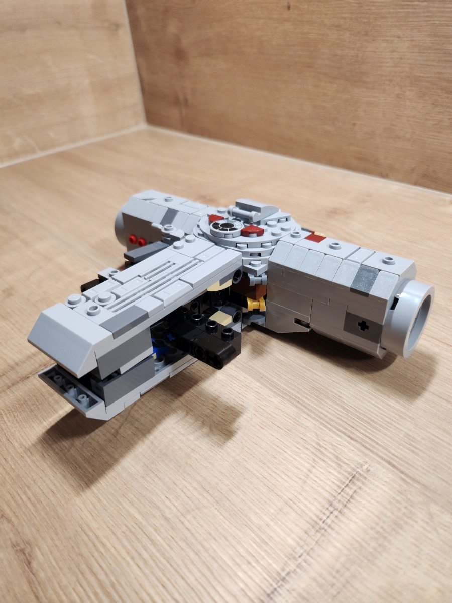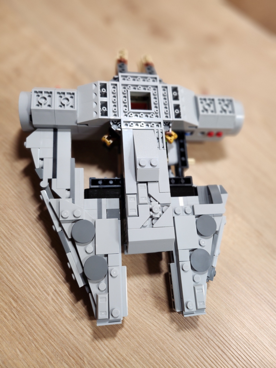 Trotz der vergleichsweise geringen Größe ist der Bauprozess alles andere als langweilig. Die Konstruktion beginnt mit einem stabilen Mittelsteg, an den schrittweise Seitenplatten und Aufbauten angesetzt werden. Die Struktur erinnert in Miniaturform an den legendären UCS-Falcon, nur dass hier jede Verbindung ein kleines technisches Kunststück ist. Besonders eindrucksvoll sind die cleveren Plattenkonstruktionen, die durch Kugelgelenke und Clips leicht angewinkelt werden und so die charakteristische, organische Form des Falcons erzeugen. Die Bauweise ist angenehm fordernd, aber nie frustrierend, das perfekte Maß an Herausforderung für erfahrene Baumeister.