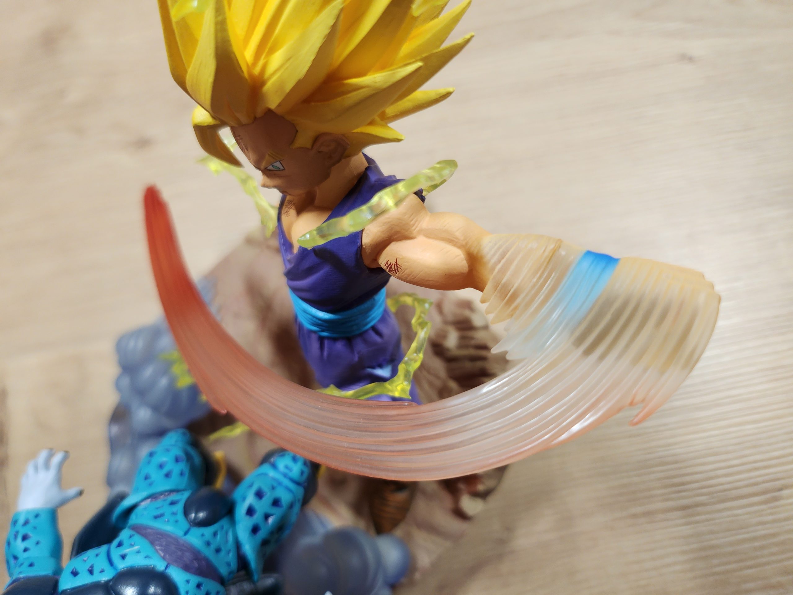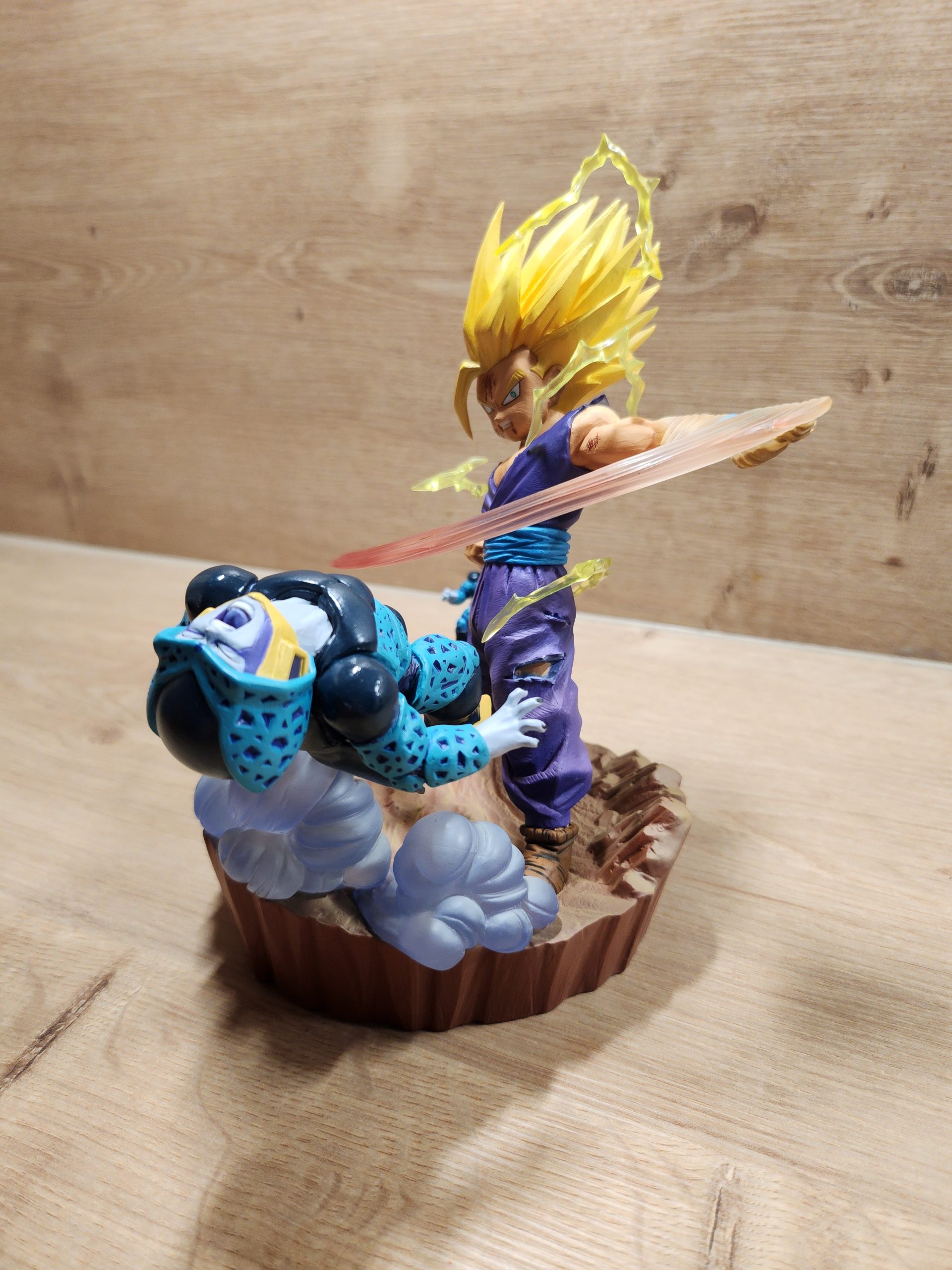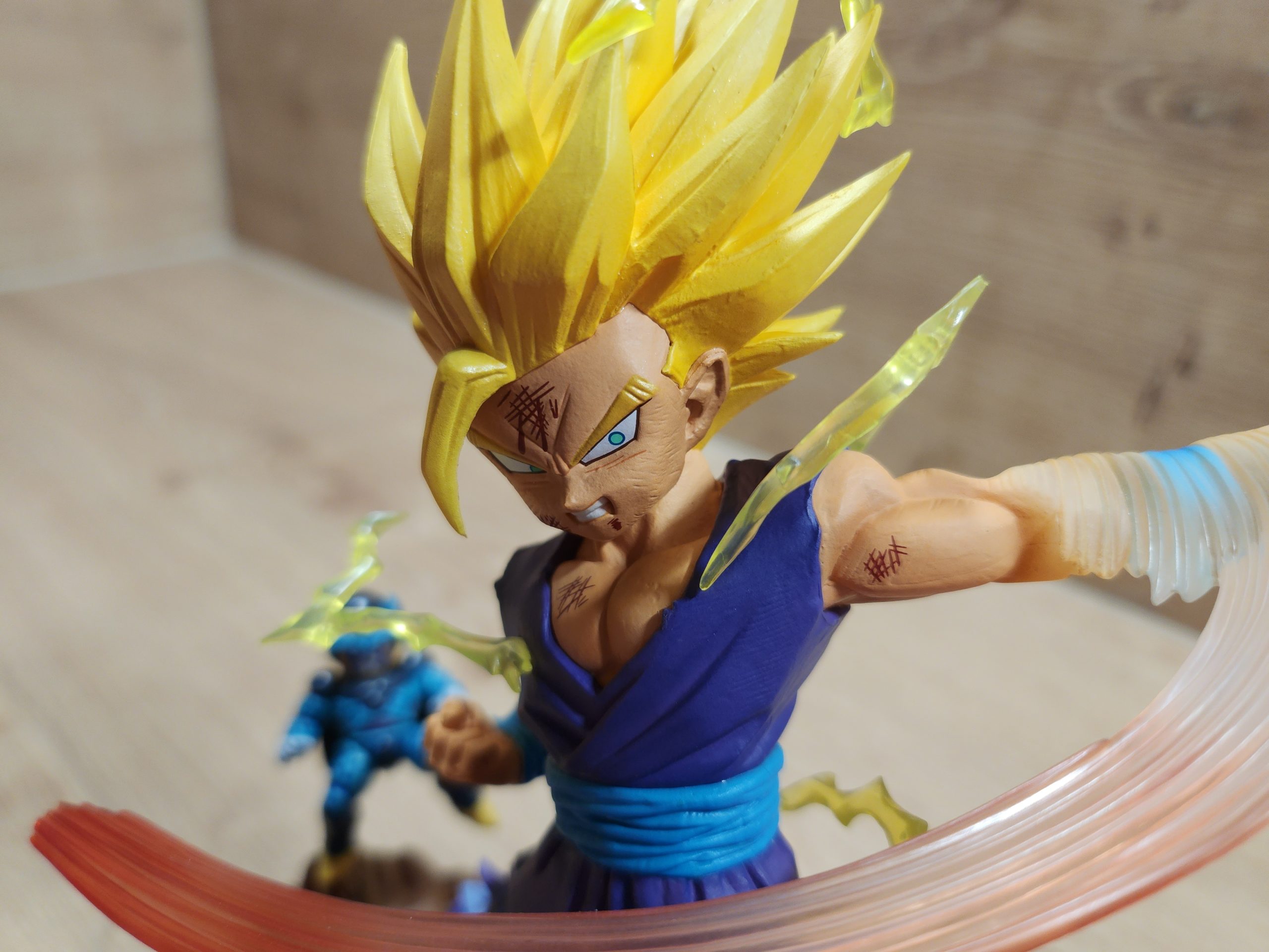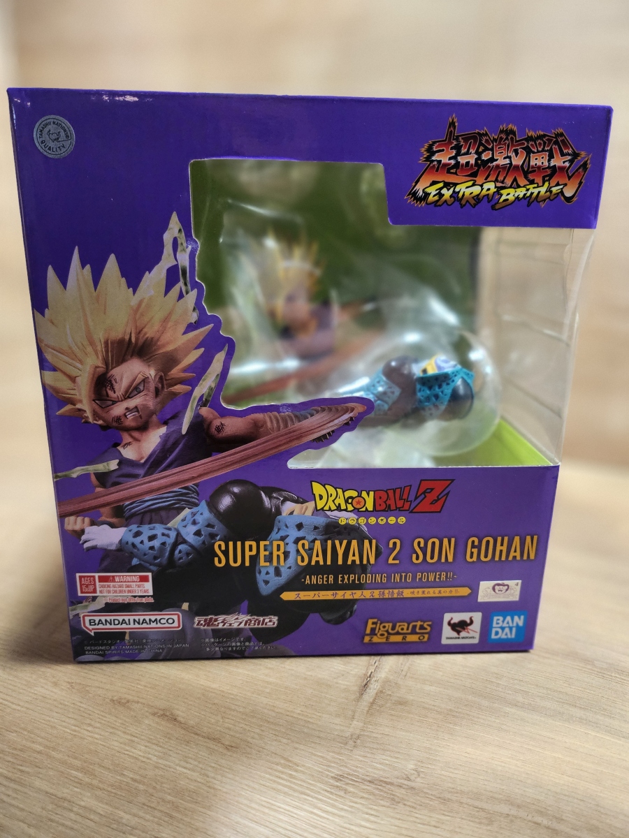 - Thema & Pose: Super Saiyan 2 Gohan mit energetischem Effekt, Kampfspuren, starkem Ausdruck.