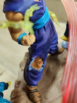Das Sculpt überzeugt durch klassische SSJ2-Merkmale: aufgerichtete Haare, angespannter Körper, energiegeladener Ausdruck. Die Pose vermittelt Bewegung, Gohan wirkt, als stürze er gerade mit voller Kraft vor. Laut Händlerseite: „Anger Exploding Into Power”.