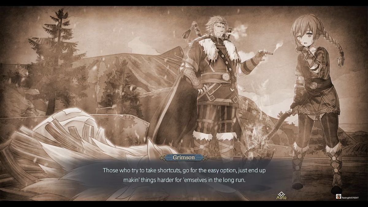 Ein magisches Ereignis bindet die beiden buchstäblich aneinander. Als sogenannte Shield Siblings sind sie gezwungen, gemeinsam gegen die unsterblichen Griegr zu kämpfen. Diese übernatürlichen Gegner stellen die Region vor eine existenzielle Bedrohung, während Adol und Karja langsam lernen, ihre Verbindung zu kontrollieren. Gerade Karja trägt die emotionale Schwere der Geschichte. Was zunächst wie die klassische grimmige Kriegerin wirkt, entwickelt sich zu einer vielschichtigen Figur mit spürbarem Wachstum. Die Dynamik zwischen ihr und Adol ist einer der stärksten Aspekte der Handlung.
