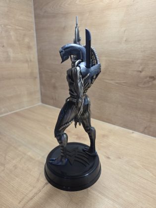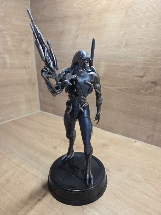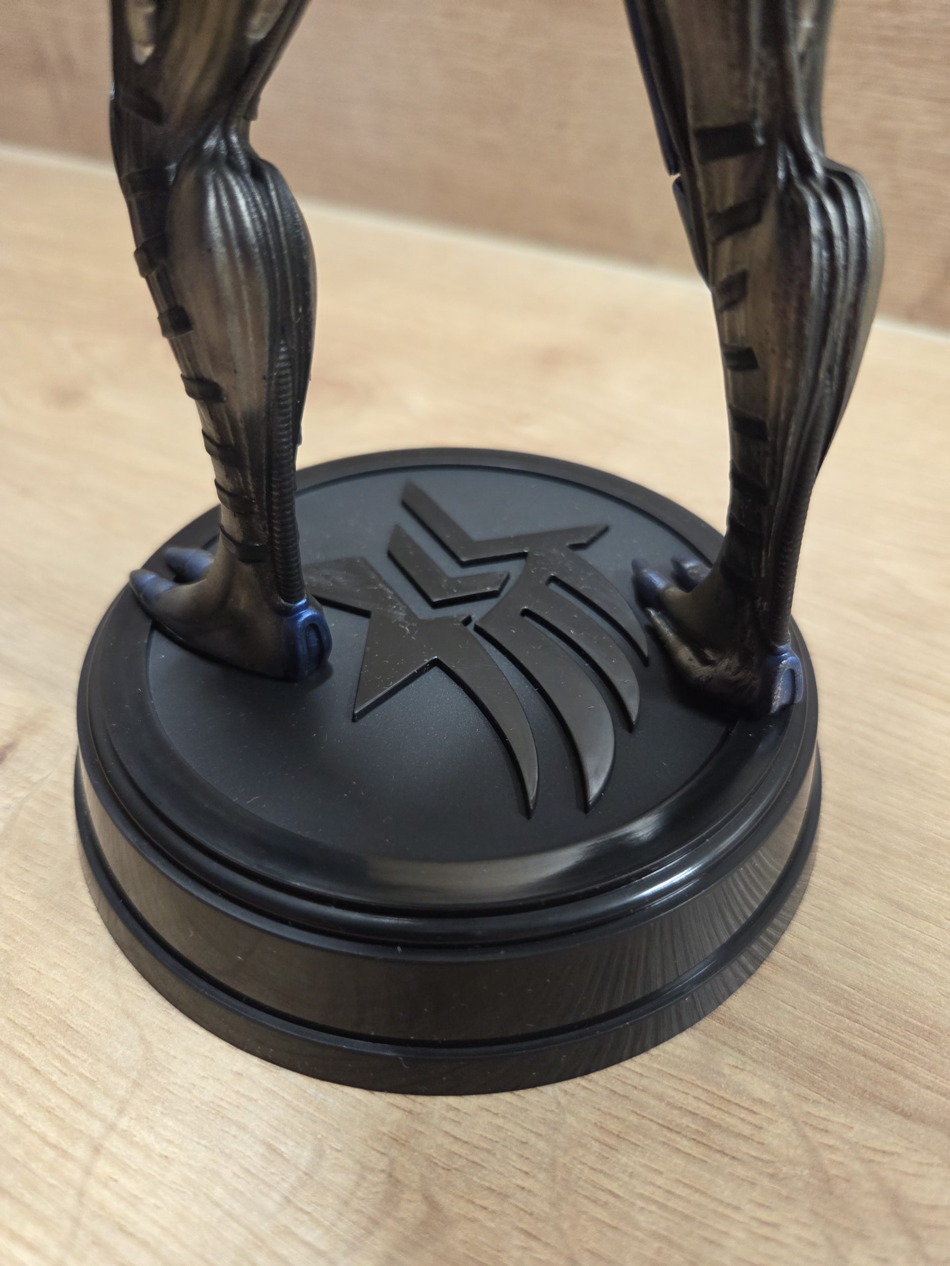 Legion ist kein überzeichneter Actionheld. Er ist ruhig, analytisch und in seiner Art beinahe philosophisch. Statt aggressiver Pose oder übertriebener Dynamik zeigt die Figur genau diese kontrollierte Präsenz. Die Haltung wirkt bewusst gewählt: leicht nach vorne geneigt, aufmerksam, fast beobachtend. Es ist keine Szene aus einem Gefecht, sondern ein Moment zwischen zwei Entscheidungen und das passt perfekt zur Figur. Mit einer Höhe von rund 25 bis 30 Zentimetern besitzt das Modell eine angenehme Größe für Sammler. Es dominiert das Regal nicht, ist aber präsent genug, um sofort ins Auge zu fallen. Besonders in einer Vitrine mit indirekter Beleuchtung kommt die Silhouette hervorragend zur Geltung.