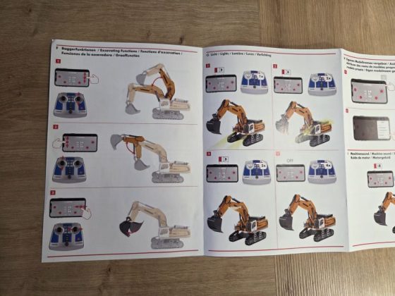 • Funktionen: Fahrbewegung, Baggerarm, Drehung des Aufbaus, Beleuchtung