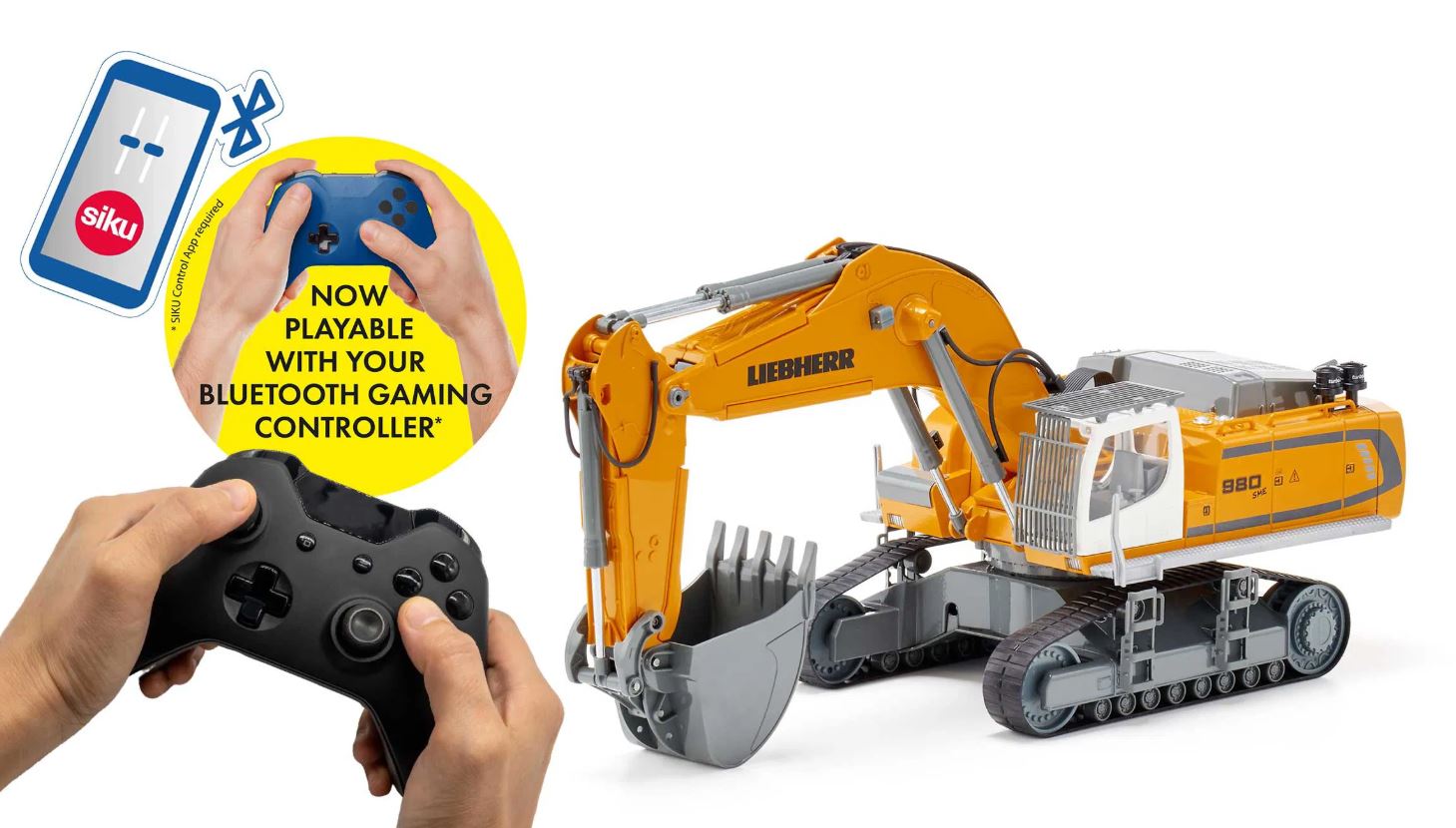 Eine der spannendsten Neuerungen der aktuellen sikucontrol-Generation ist die Möglichkeit, Fahrzeuge wie den Liebherr R980 SME zusätzlich mit einem Bluetooth-Gaming-Controller zu steuern. Statt ausschließlich die klassische Fernsteuerung oder das virtuelle Gamepad in der App zu nutzen, lässt sich das Modell über einen Controller von PlayStation, Xbox, Nintendo oder anderen Bluetooth-fähigen Geräten bedienen. Voraussetzung ist lediglich, dass der Controller mit dem Smartphone oder Tablet gekoppelt wird und anschließend die SIKUCONTROL-App gestartet wird. In der Praxis funktioniert das erstaunlich gut. Durch die analogen Sticks moderner Gamepads lassen sich Lenkung, Fahrgeschwindigkeit und Bewegungen von Arbeitsgeräten deutlich feinfühliger dosieren als mit Touchscreen oder einfachen Tasten. Gerade bei komplexen Modellen wie dem Liebherr-Bagger macht sich dieser Vorteil sofort bemerkbar: Der Oberwagen lässt sich präzise drehen, der Arm kontrolliert bewegen und selbst kleinere Arbeitsbewegungen wirken viel realistischer.