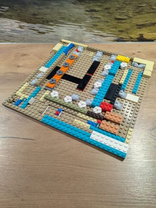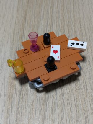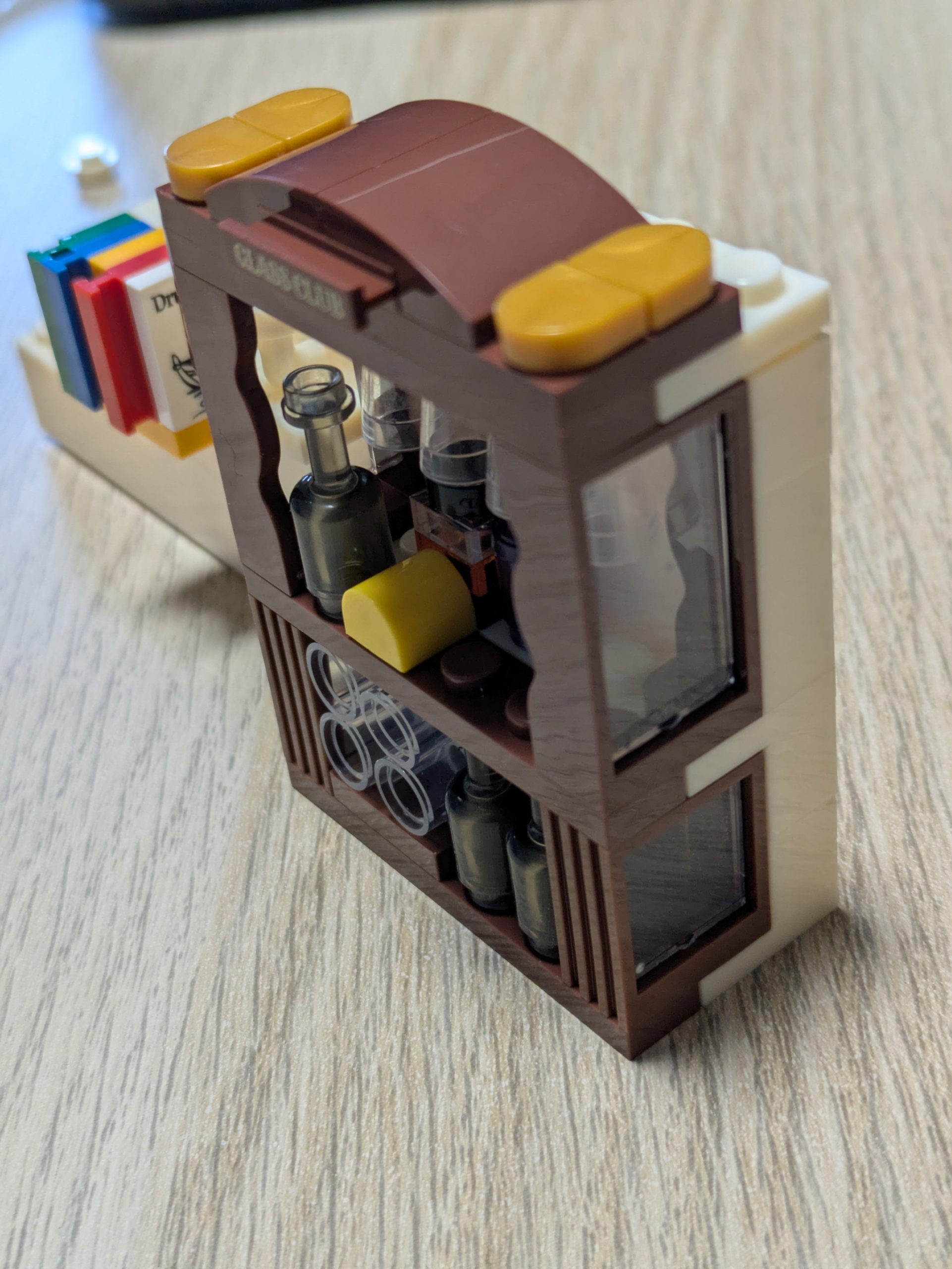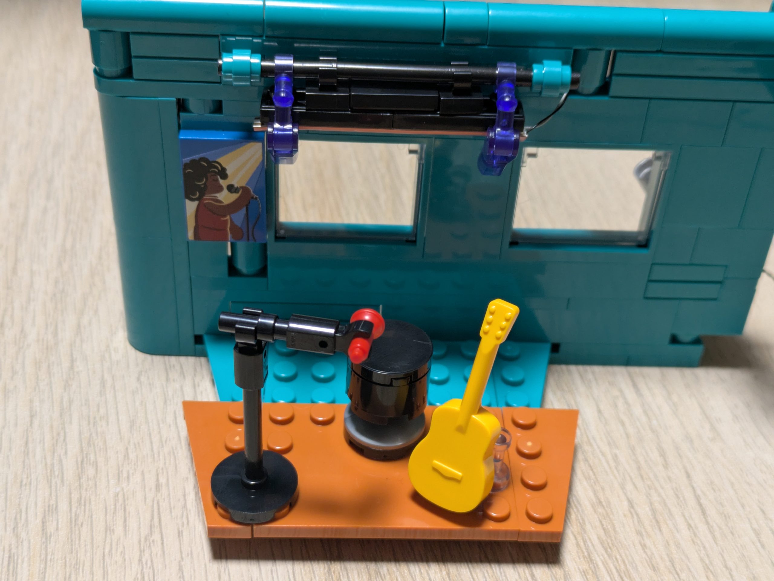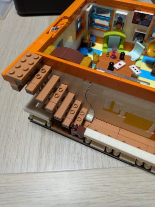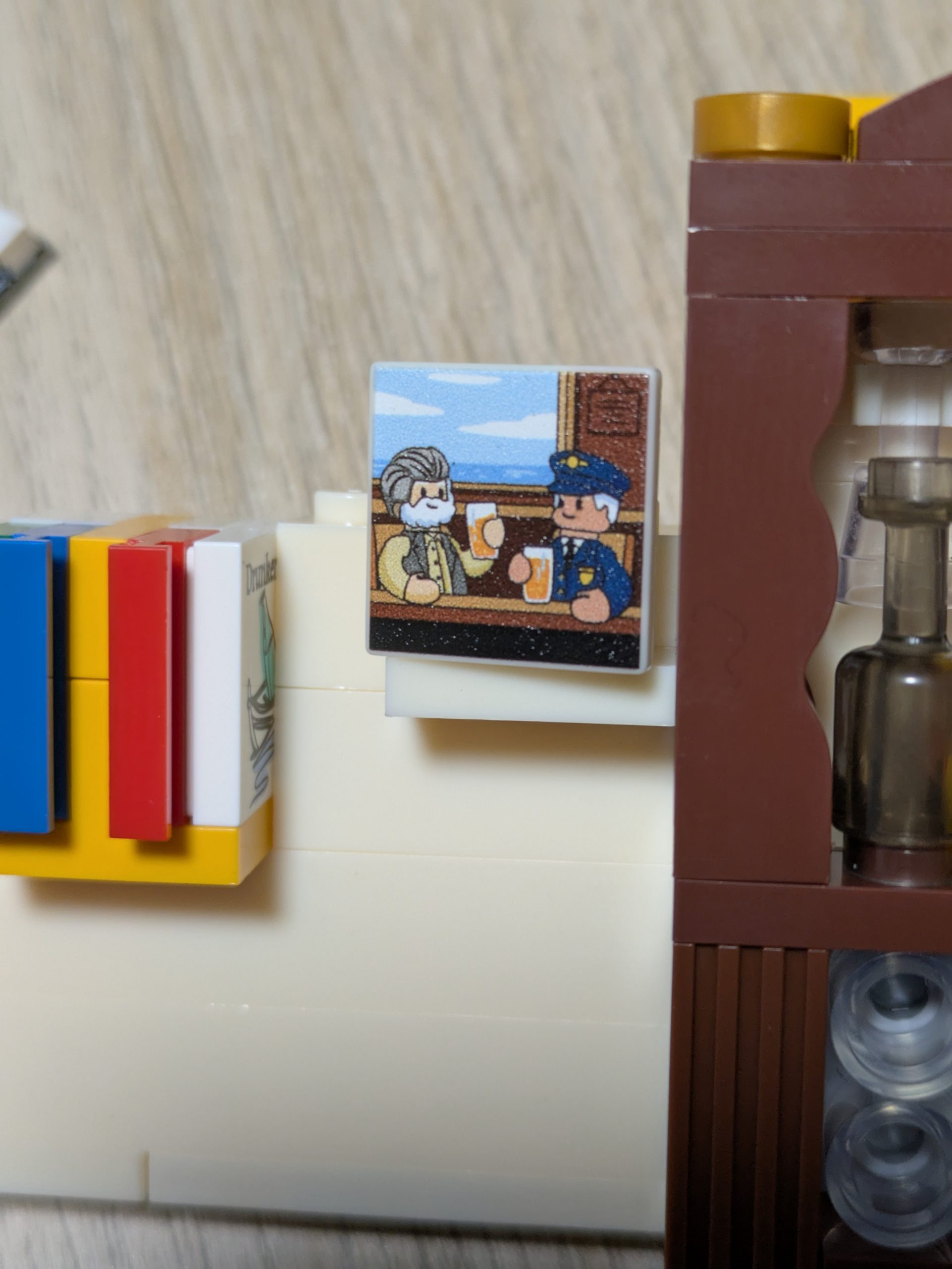 Diese Innenräume gehören zu den Stärken vieler Lumibricks-Sets, da sie meist mit überraschend vielen kleinen Details ausgestattet sind. Der obere Bereich des Gebäudes wird anschließend mit einer Dachstruktur abgeschlossen. Oft enthalten Lumibricks-Sets hier zusätzliche Szenen, etwa eine Dachterrasse oder Lounge-Ecke. Die Moon Bar nutzt diesen Raum vermutlich ebenfalls als kleinen Außenbereich mit Blick auf das Meer.
