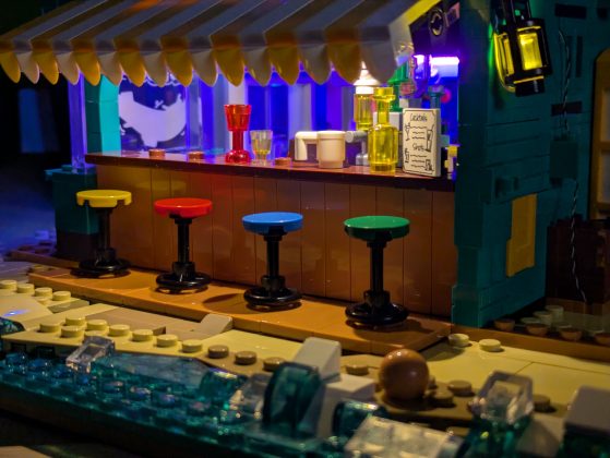 Lumibricks hat sich mit seinen Sets in den letzten Jahren besonders durch integrierte Lichtsysteme einen Namen gemacht. Viele Modelle besitzen bereits beim Bau installierte LEDs, die Gebäude abends wie kleine Miniatur-Dioramen wirken lassen. Die Moon Bar setzt dieses Konzept konsequent fort und kombiniert eine Strandbar mit stimmungsvoller Neon-Beleuchtung.