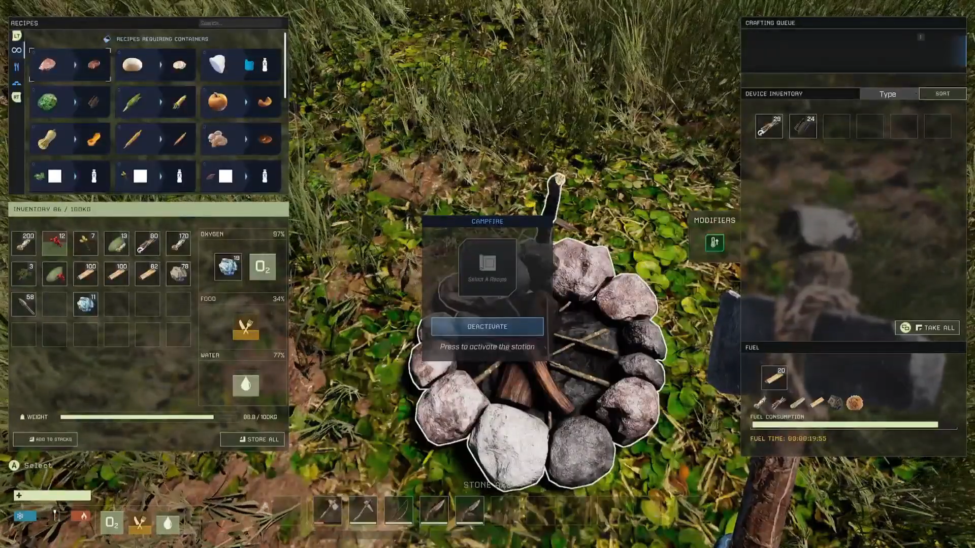 Während auch wilde Tiere eine Bedrohung darstellen, liegt die eigentliche Gefahr auf ICARUS in der Umwelt selbst. Das Spiel nutzt ein dynamisches Wettersystem, das regelmäßig extreme Ereignisse auslöst. Heftige Stürme können Gebäude beschädigen oder sogar vollständig zerstören. Blitzeinschläge setzen Wälder in Brand und gefährden alles, was Spieler errichtet haben. Hinzu kommen giftige Atmosphären, extreme Temperaturen und andere Umweltbedingungen, die spezielle Ausrüstung erforderlich machen. Diese Systeme sorgen dafür, dass sich jede Mission anders anfühlt. Ein scheinbar sicherer Stützpunkt kann innerhalb weniger Minuten zu einer Todesfalle werden, wenn ein Sturm aufzieht. Die Spieler müssen daher ständig improvisieren und ihre Strategien anpassen.