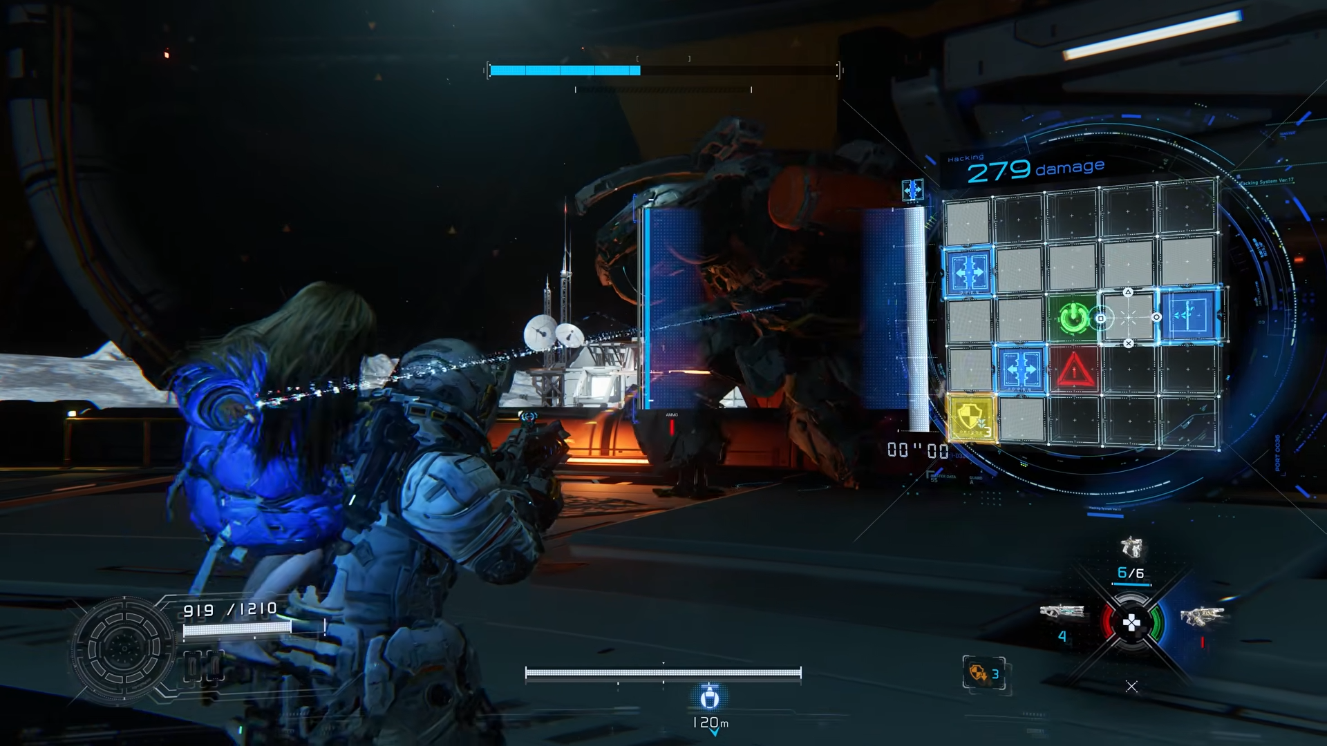 Das Kampfsystem ist klar die größte Stärke von Pragmata. Jede Begegnung fordert Aufmerksamkeit und schnelles Denken. Unterschiedliche Gegnertypen und Kombinationen sorgen dafür, dass Kämpfe abwechslungsreich bleiben. Mit der Zeit schaltet man neue Waffen und Fähigkeiten frei, die das Gameplay erweitern. Besonders spannend sind die zusätzlichen Hack Optionen, die Gegner einfrieren, manipulieren oder überhitzen lassen. Dadurch entstehen viele kreative Möglichkeiten, Kämpfe zu lösen. Auch das Gunplay selbst überzeugt. Waffen fühlen sich wuchtig an und liefern starkes Feedback. Besonders die kraftvolleren Tools machen jede Konfrontation spürbar intensiver.