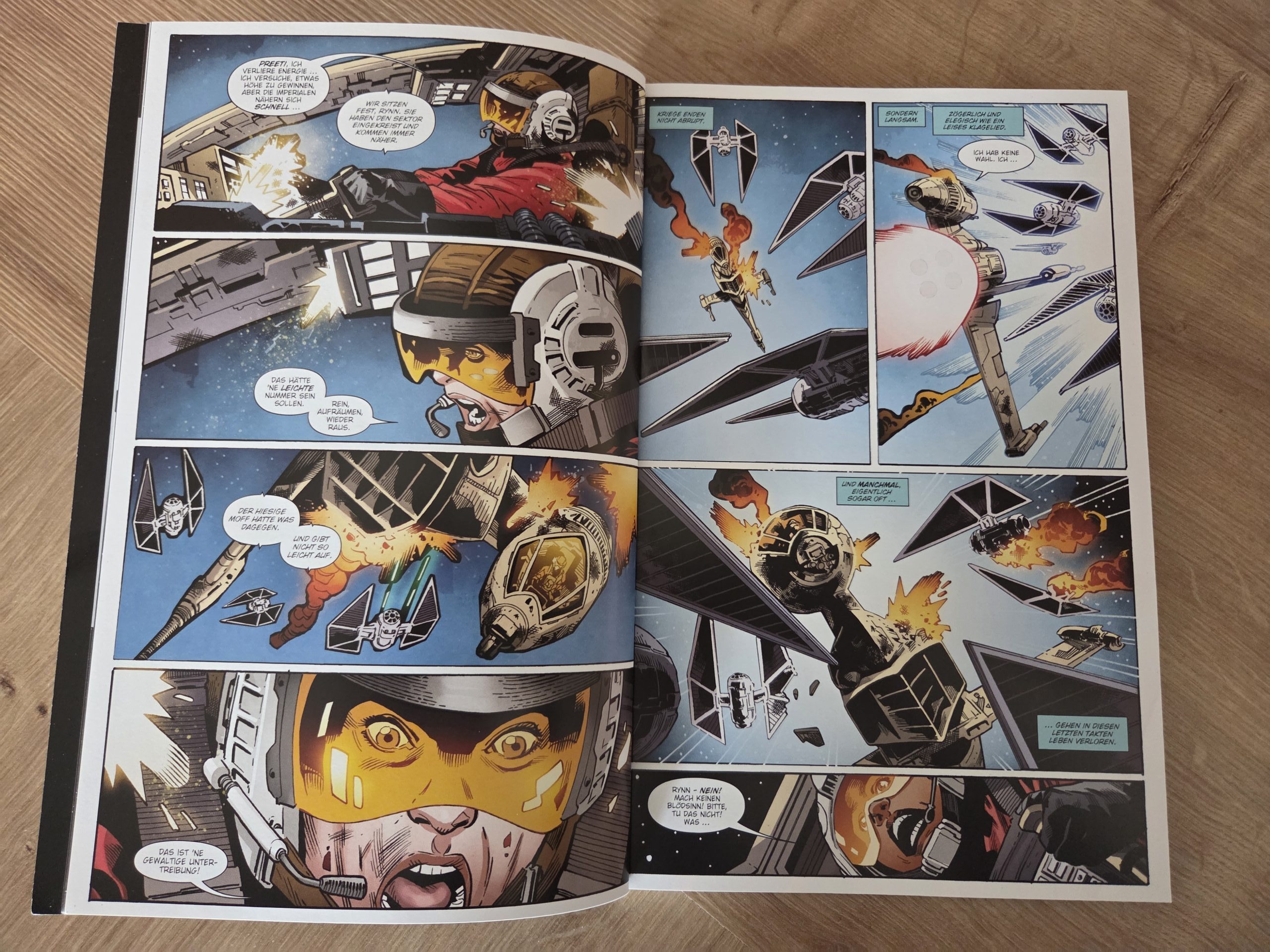 So viel zur Ausgangslage, doch Aufkeimender Widerstand konnte mich leider auf mehreren Ebenen nicht überzeugen. Trotz des großen Titels Die Schlacht von Jakku und der Ankündigung, wichtige Elemente des bestehenden Kanons miteinander zu verknüpfen, setzt die Geschichte deutlich früher an. Fast ein Jahr vor der eigentlichen Schlacht. Statt bekannter Figuren stehen vor allem Charaktere im Mittelpunkt, die entweder aus dem inzwischen nicht mehr verfügbaren Spiel Star Wars: Uprising stammen oder komplett neu eingeführt werden. Für eine langfristig angelegte Reihe wäre dieser Ansatz nachvollziehbar gewesen. Doch angesichts des überschaubaren Umfangs von insgesamt nur drei Bänden mit je vier Ausgaben sowie ergänzenden One-Shots wirkt dieser lange Anlauf eher fehl am Platz. Hier hätte ich mir deutlich mehr Fokus und weniger Aufbau gewünscht.