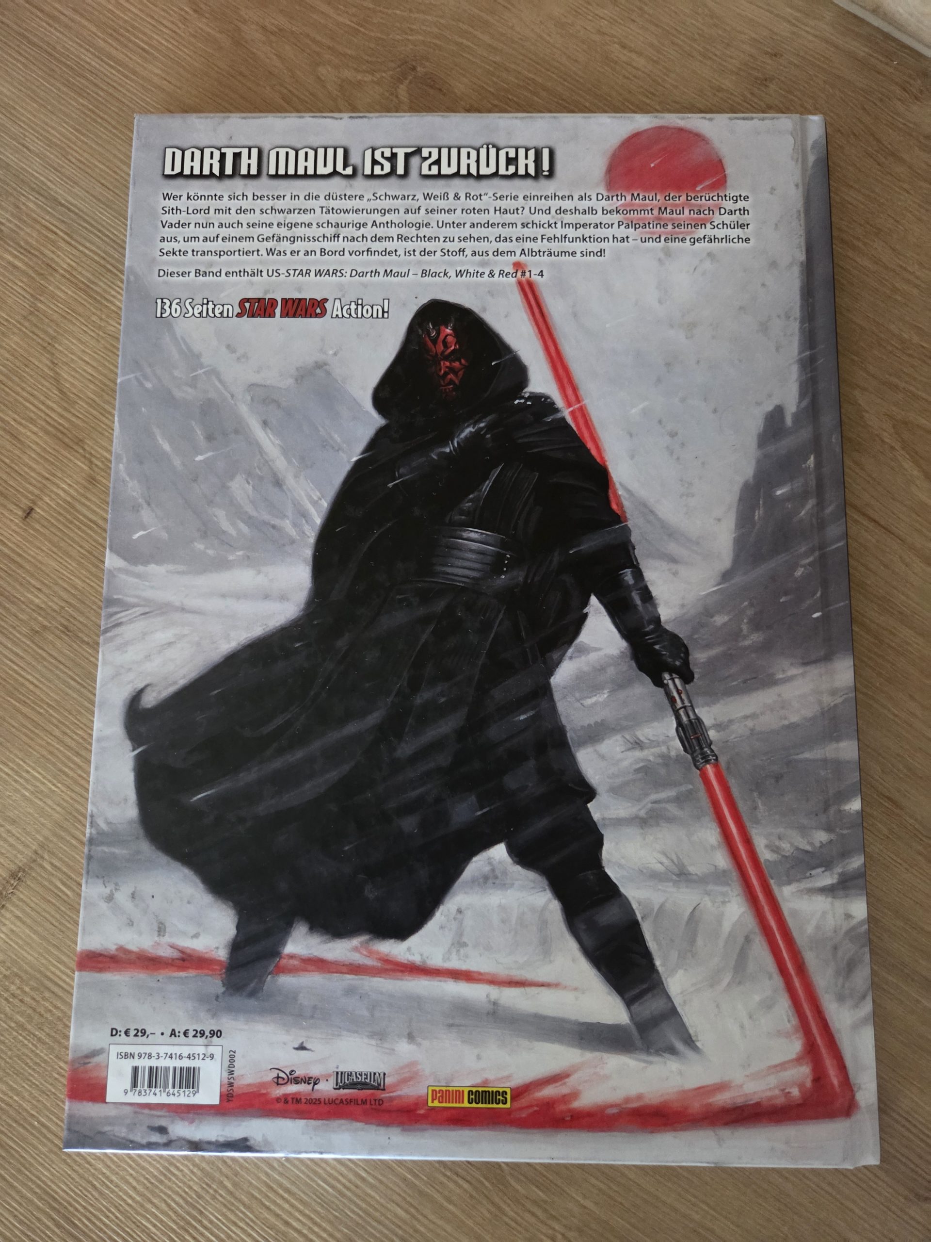 Star Wars: Darth Maul – Black, White & Red ist vor allem eines. Ein Fest für Fans des Sith-Lords. Wer Maul in seiner kompromisslosen, brutalen Art erleben möchte, kommt hier definitiv auf seine Kosten. Die einzelnen Geschichten liefern interessante Einblicke in seine Psyche und säen gekonnt die Samen für seine spätere Entwicklung. Wer hingegen auf besonders abwechslungsreiche Storys oder neue Facetten außerhalb der Prequel-Zeit hofft, könnte etwas enttäuscht werden. Dennoch bleibt der Band eine solide Anthologie mit starken Momenten, die vor allem durch ihre intensive Charakterzeichnung punktet. Unterm Strich gilt. Viel Dunkle Seite, etwas zu wenig Vielfalt. Aber für Maul-Fans definitiv einen Blick wert.