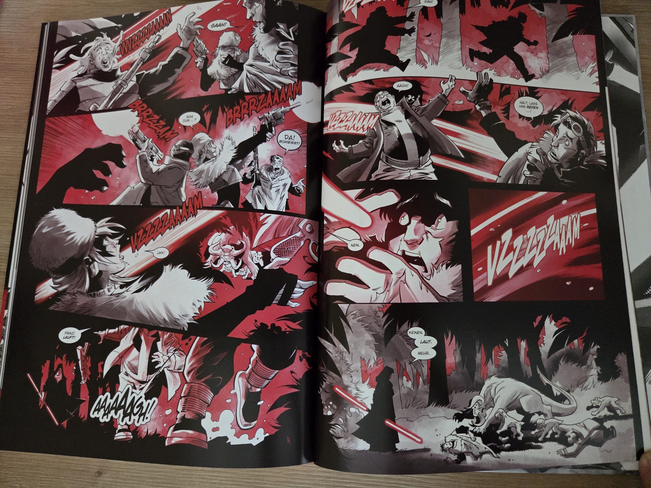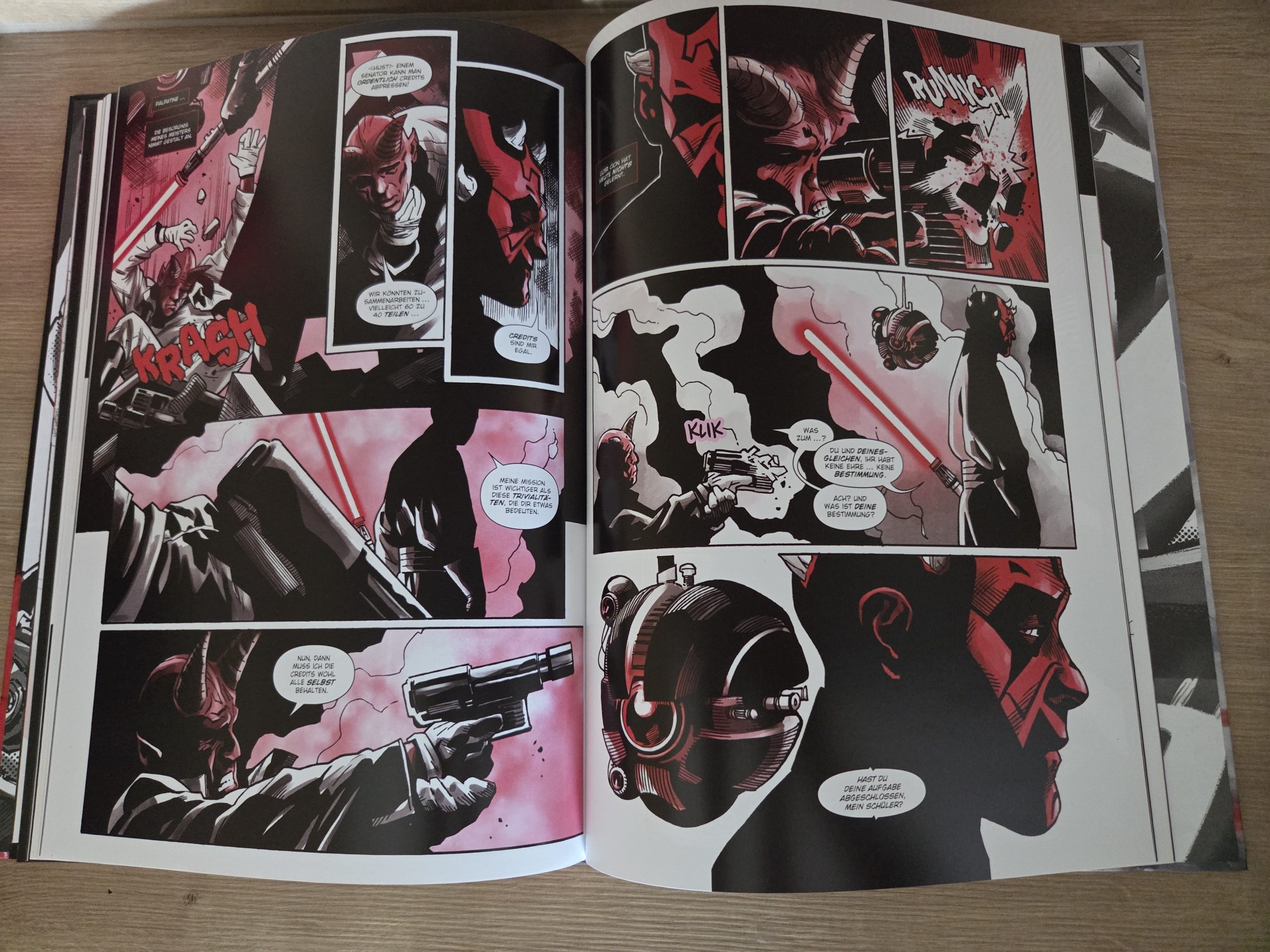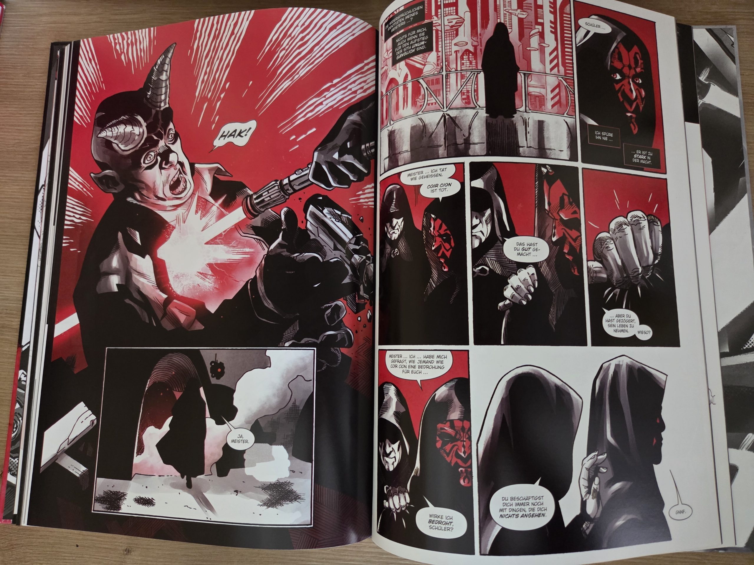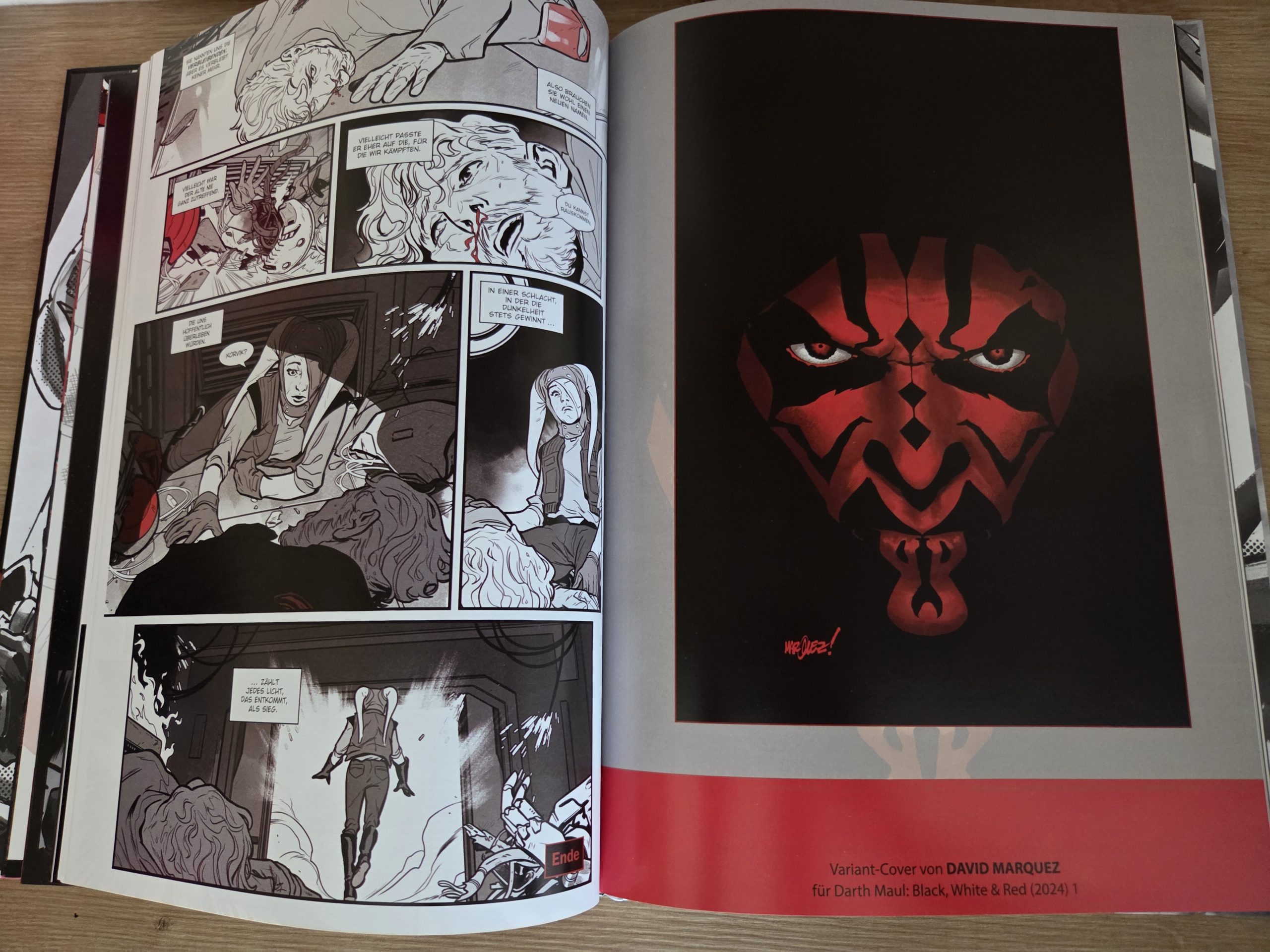 von Vielfalt und Black, White & Red bietet durchaus unterschiedliche Settings und kreative Ansätze. Erzählerisch ähneln sich die Geschichten jedoch stärker, als man es sich wünschen würde. Das Muster bleibt meist gleich. Maul erhält einen Auftrag, führt ihn aus und hinterfragt dabei zunehmend seine Rolle im System seines Meisters. Zwar funktioniert dieser Ansatz gut, um die Grundlage für Mauls spätere Entwicklung zu legen, doch die starke Fokussierung auf die Prequel-Ära schränkt die Möglichkeiten spürbar ein. Gerade bei einer Figur mit einer so vielseitigen Geschichte hätte man sich auch Ausflüge in andere Zeitabschnitte gewünscht. So entsteht beim Lesen am Stück ein gewisser Gleichklang. Trotz einzelner kreativer Highlights.